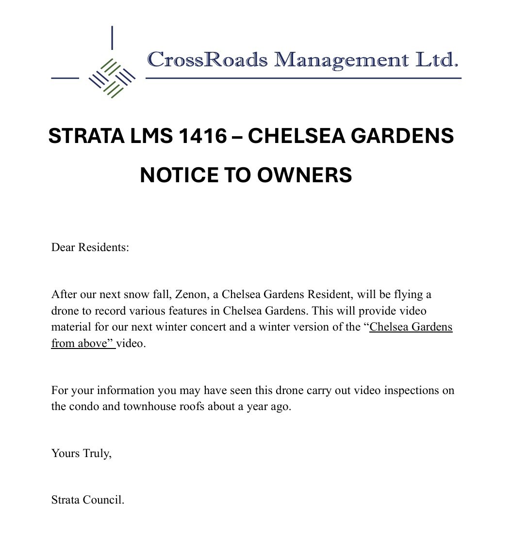 Notice for Drone Video Recording next Snow Fall