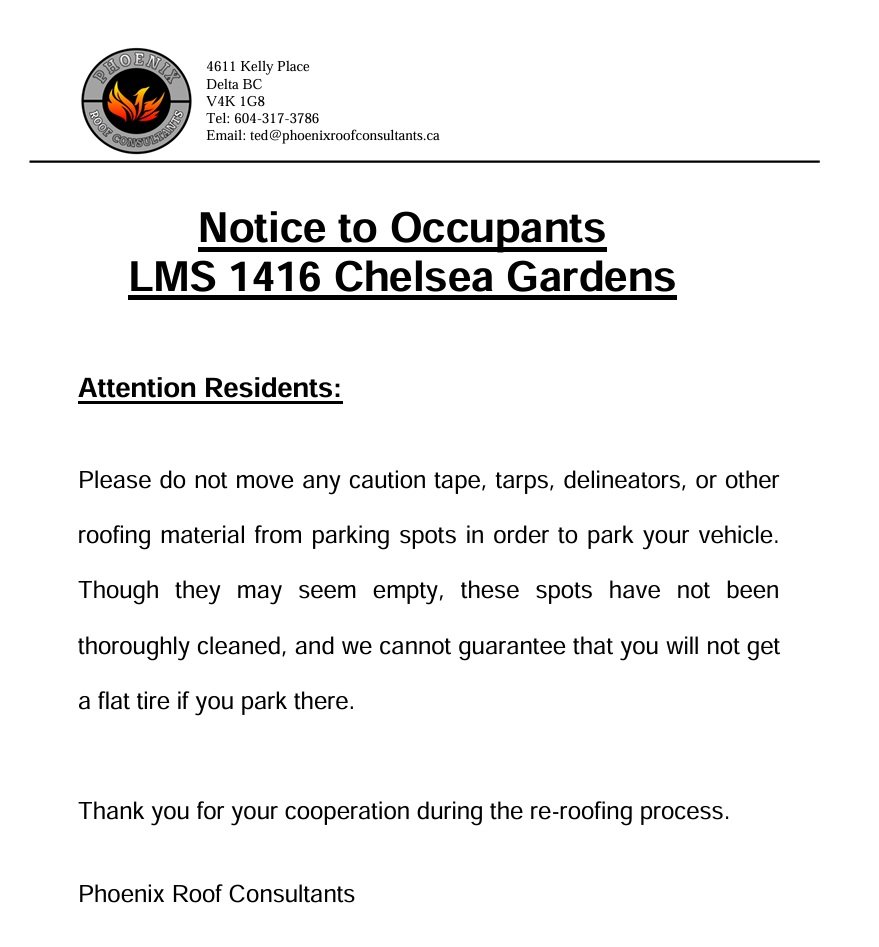 Townhouse Roofing Notice