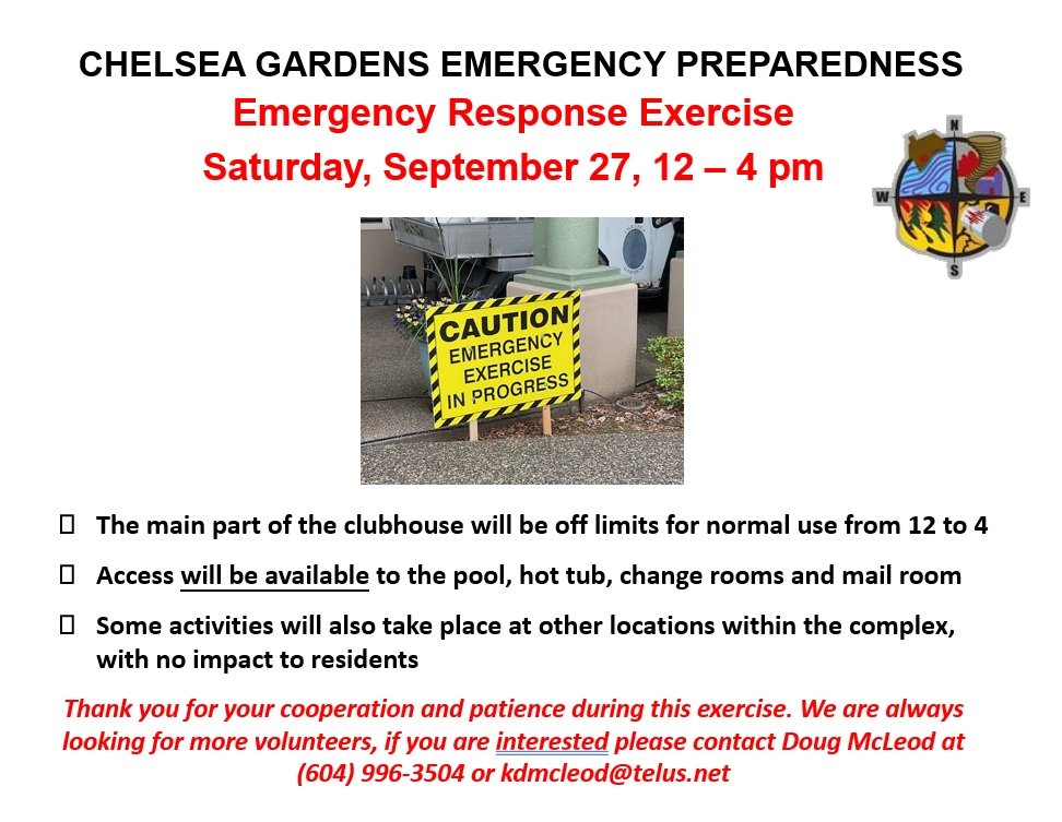 Please see the information below regarding the Emergency Response Exercise held this coming Saturday 12-4 PM